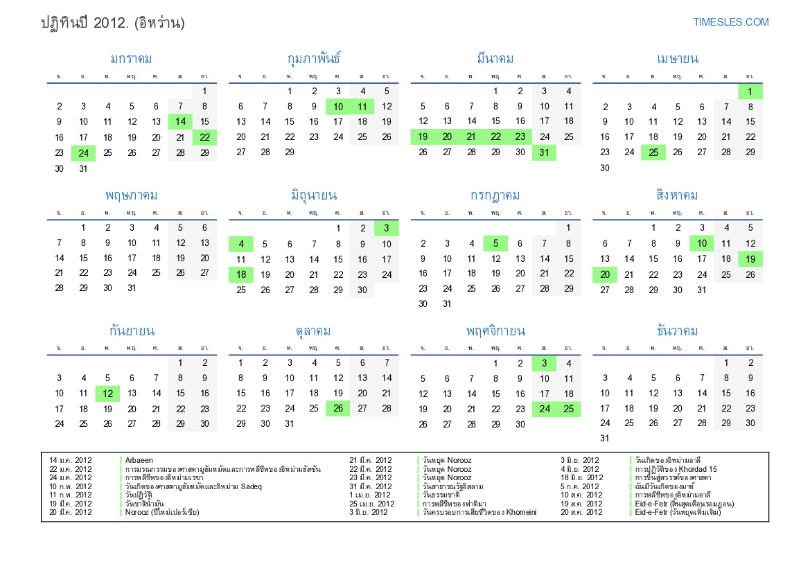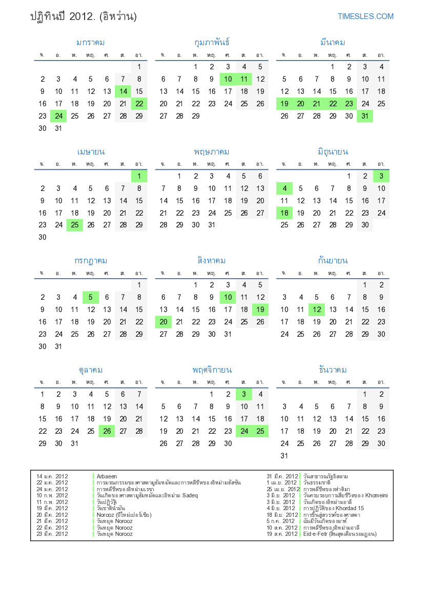 20 ส.ค. 2012 Eid-e-Fetr (วันหยุดเพิ่มเติม)