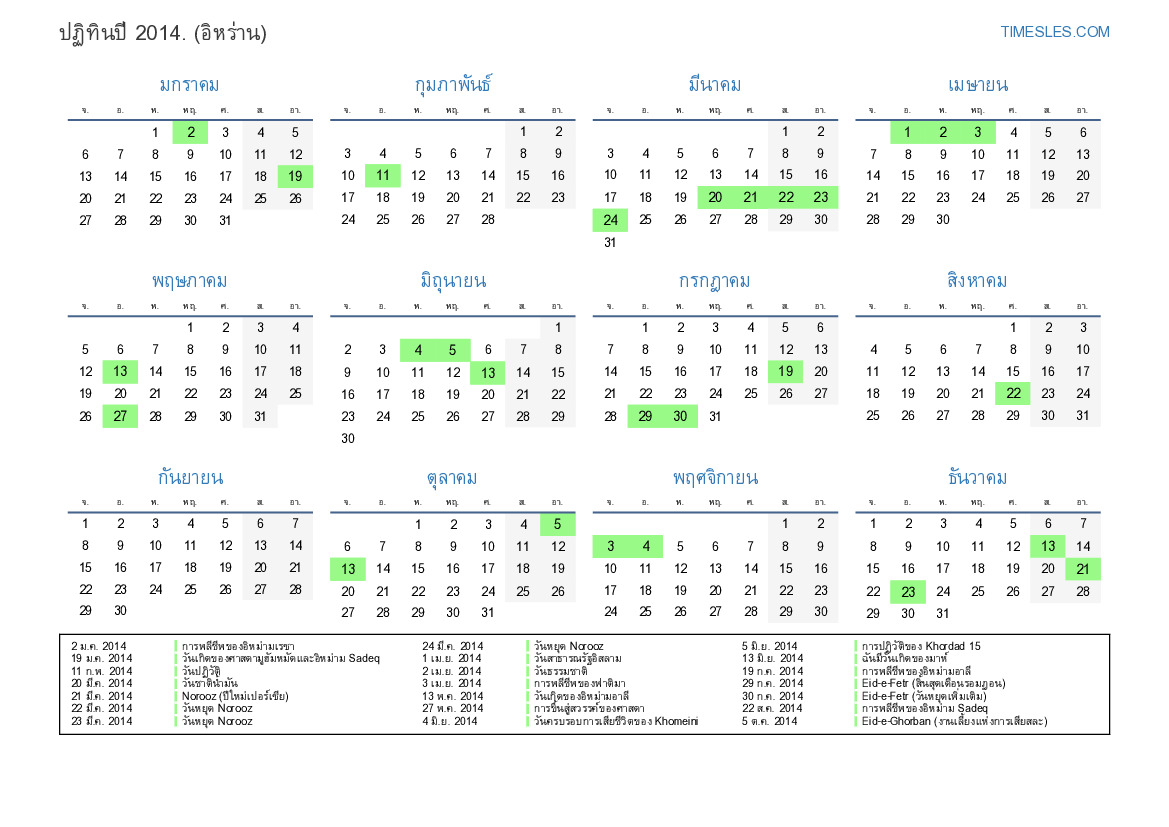 30 ก.ค. 2014 Eid-e-Fetr (วันหยุดเพิ่มเติม)