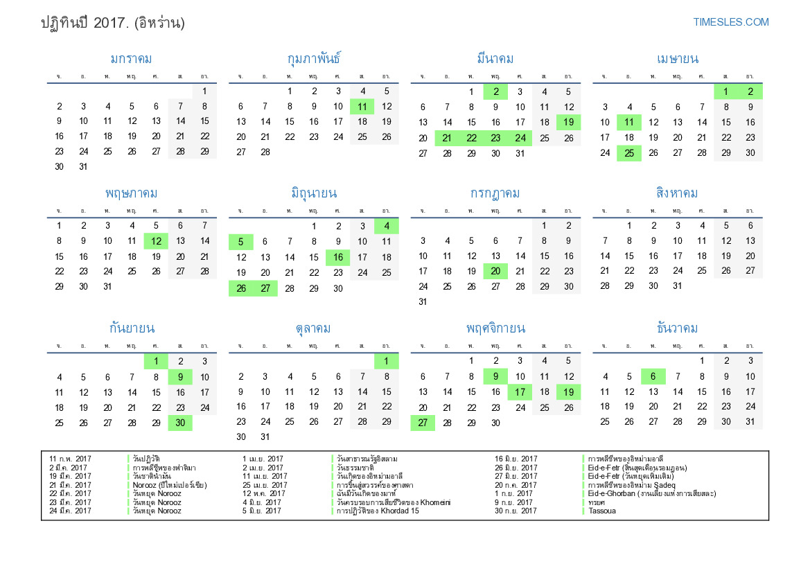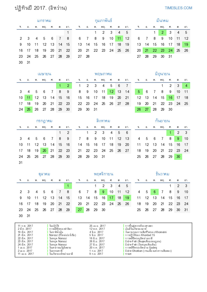 27 มิ.ย. 2017 Eid-e-Fetr (วันหยุดเพิ่มเติม)
