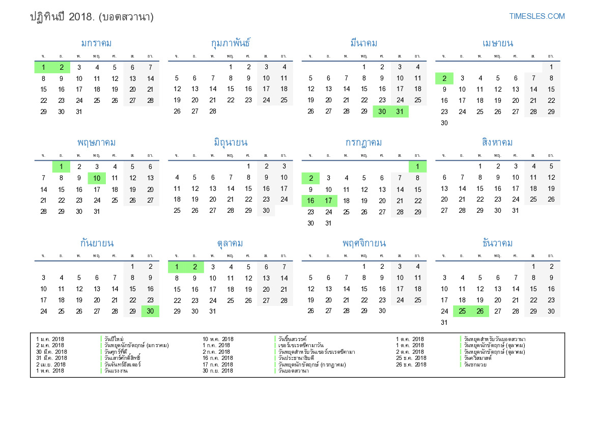 2 ม.ค. 2018 วันหยุดนักขัตฤกษ์ (มกราคม)