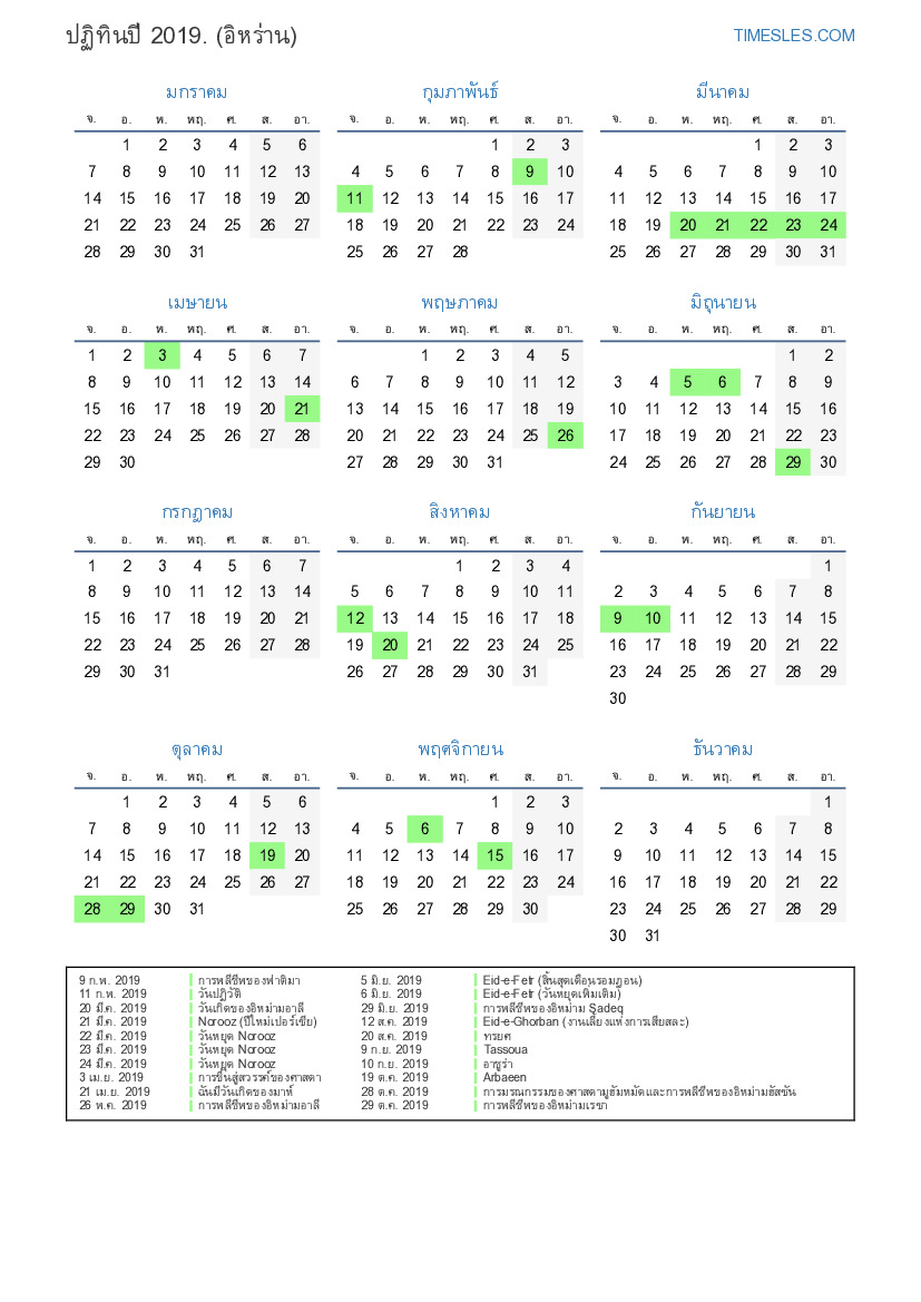 6 มิ.ย. 2019 Eid-e-Fetr (วันหยุดเพิ่มเติม)