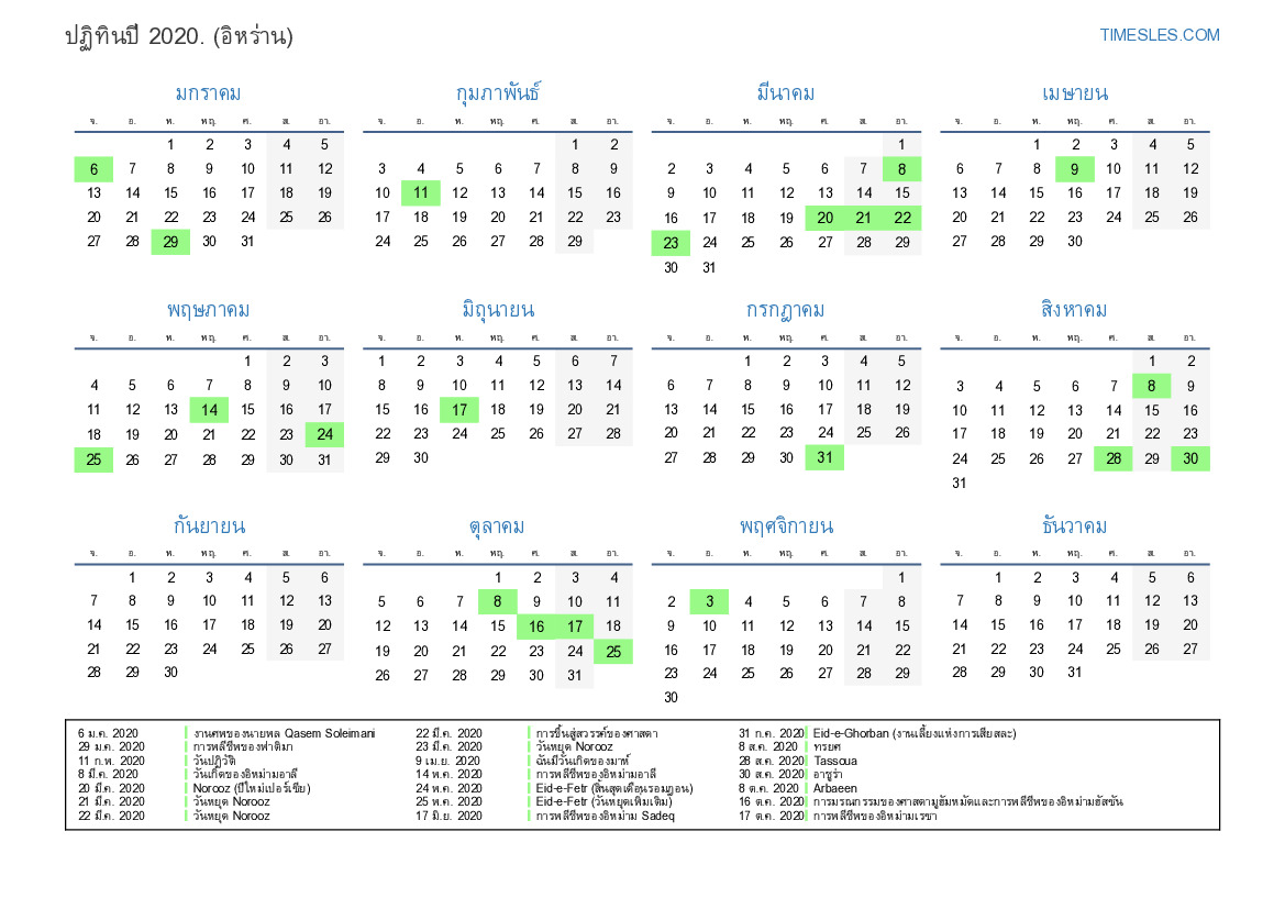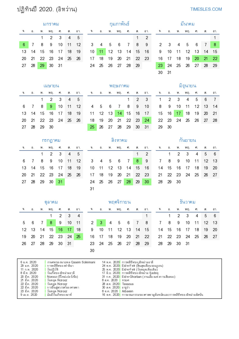 25 พ.ค. 2020 Eid-e-Fetr (วันหยุดเพิ่มเติม)