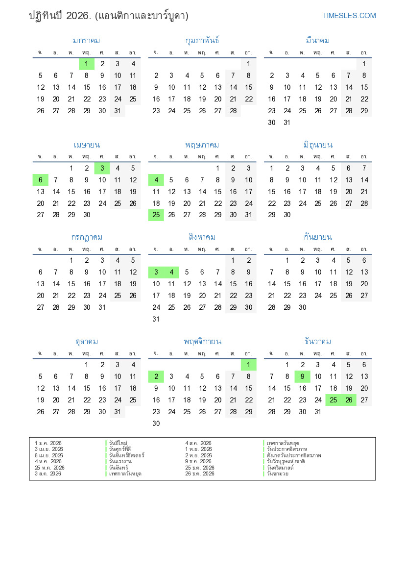 4 ส.ค. 2026 เทศกาลวันหยุด