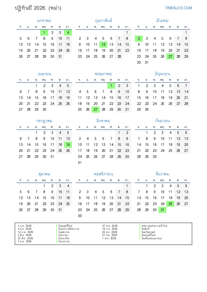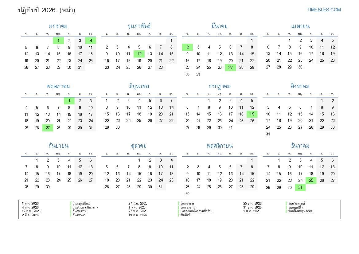 31 ธ.ค. 2026 วันหยุดปีใหม่