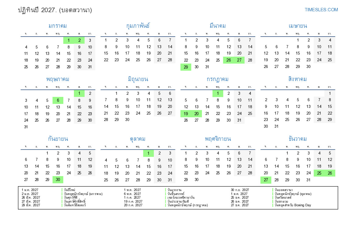 2 ม.ค. 2027 วันหยุดนักขัตฤกษ์ (มกราคม)
