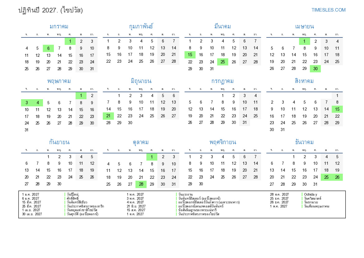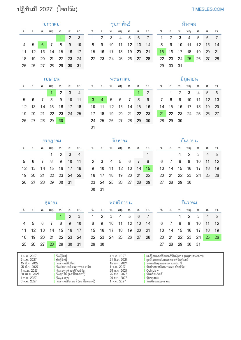 15 มี.ค. 2027 วันจันทร์สีเขียว