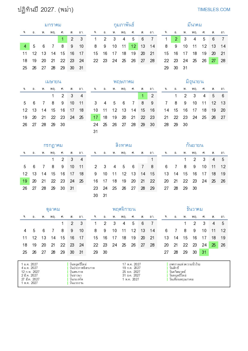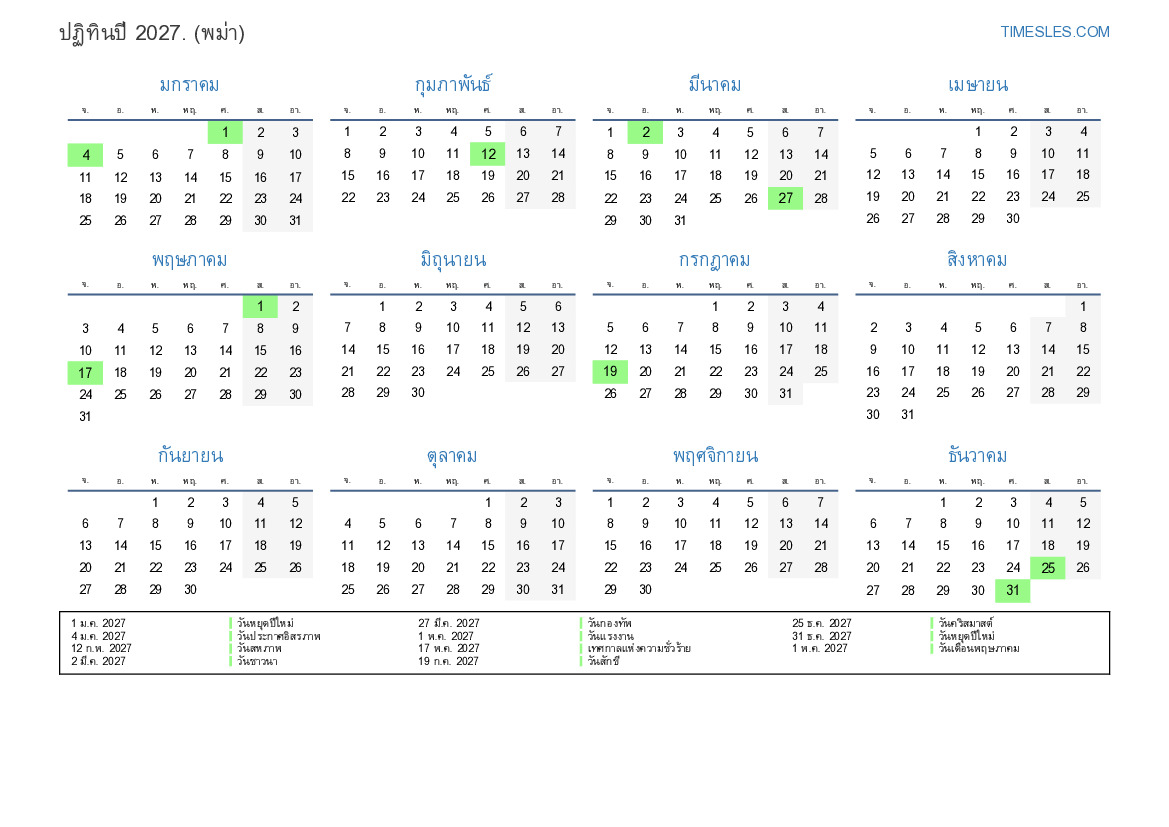 31 ธ.ค. 2027 วันหยุดปีใหม่