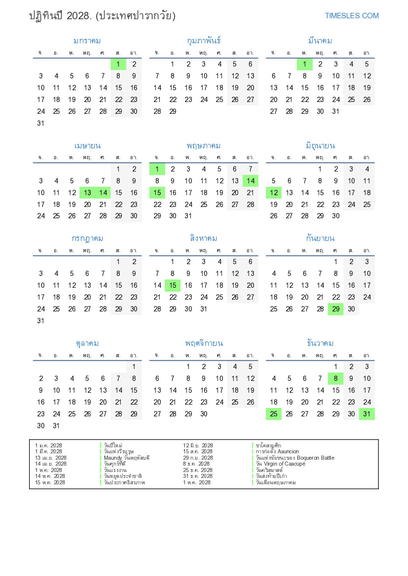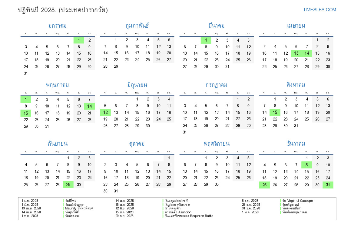 14 พ.ค. 2028 วันหยุดประจำชาติ