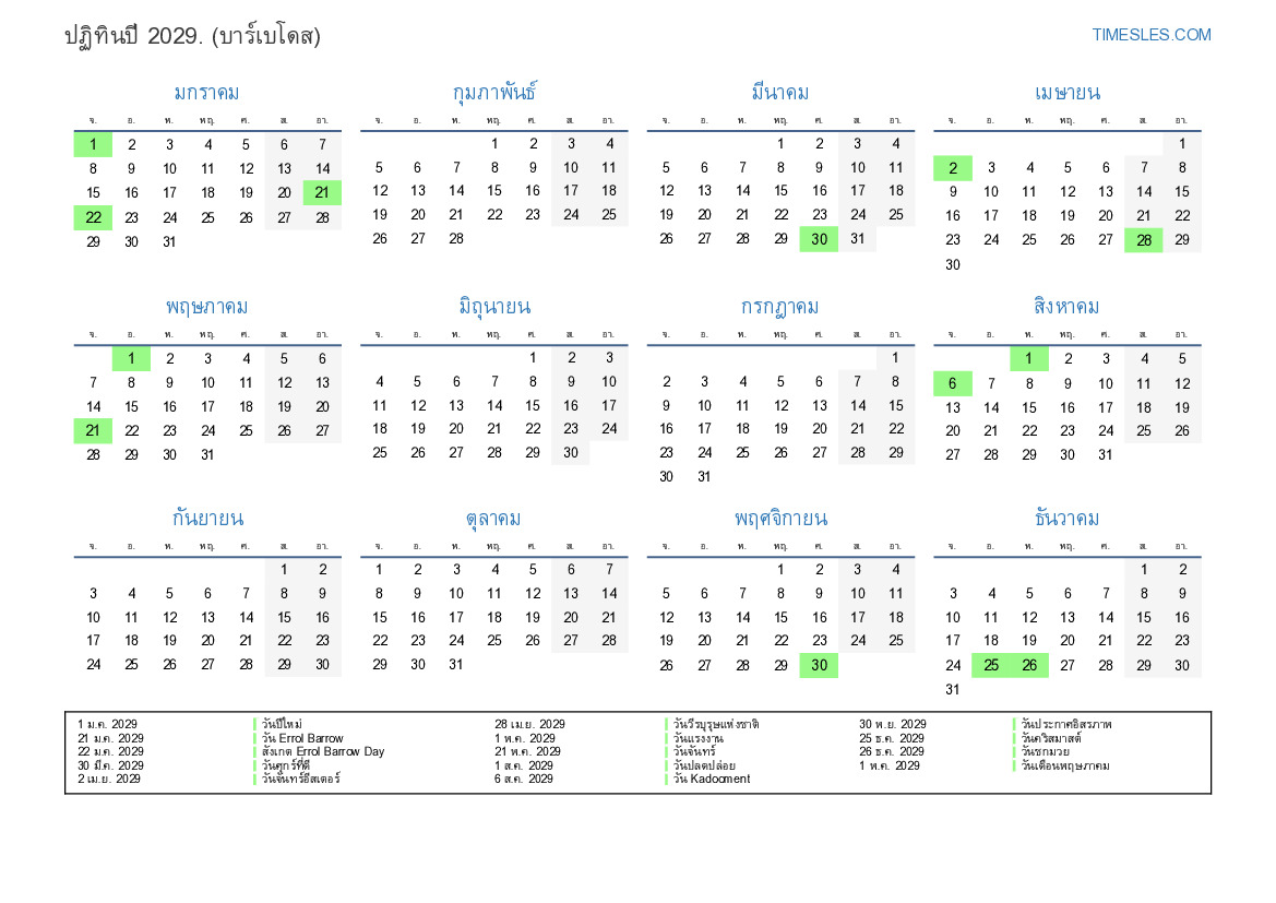 22 ม.ค. 2029 สังเกต Errol Barrow Day
