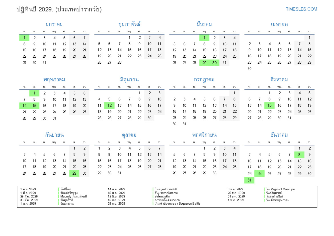 14 พ.ค. 2029 วันหยุดประจำชาติ