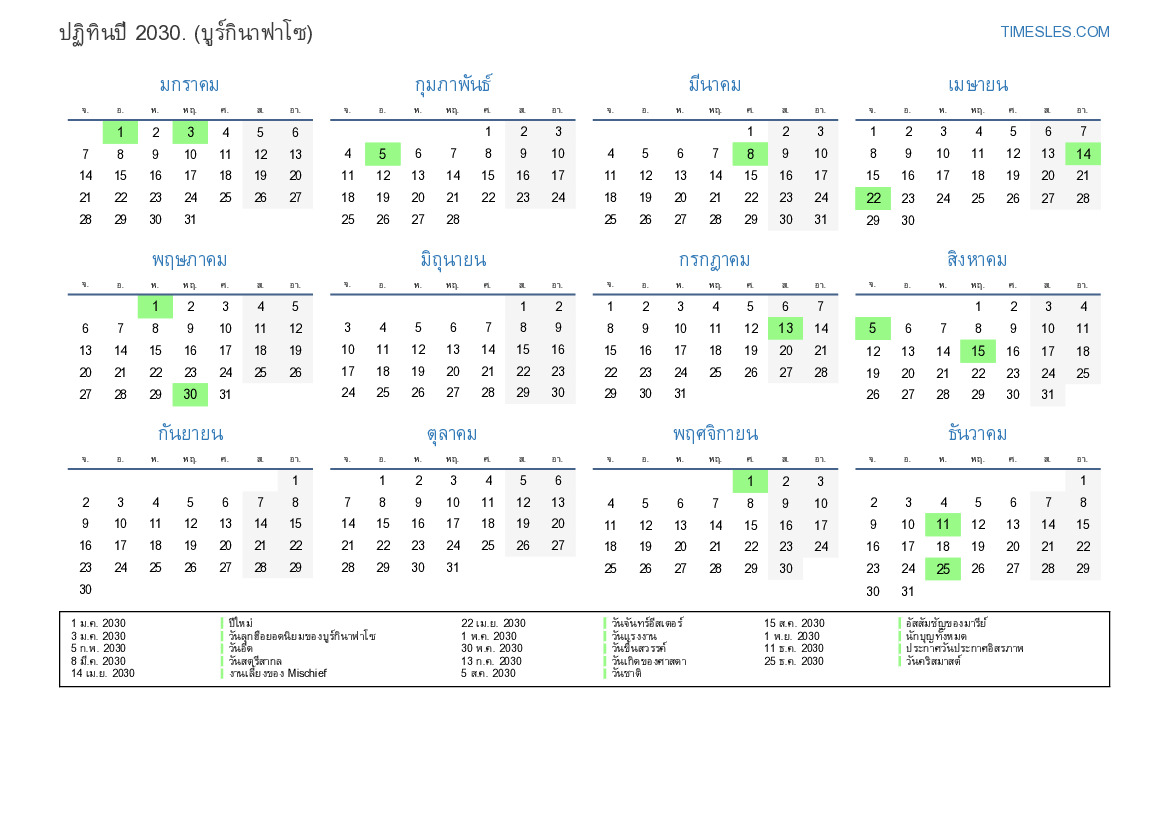 1 พ.ย. 2030 นักบุญทั้งหมด