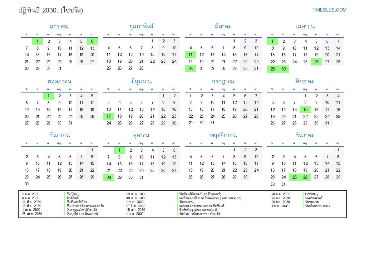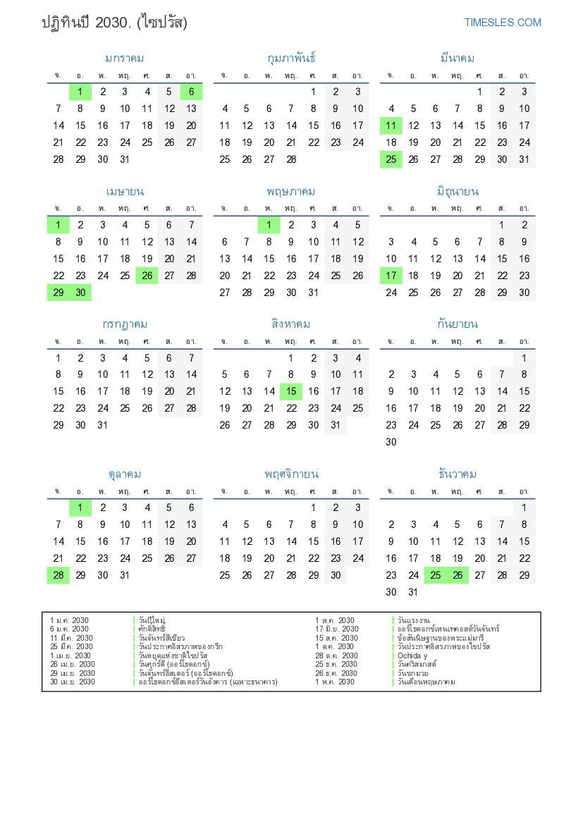 1 พ.ค. 2030 วันเดือนพฤษภาคม