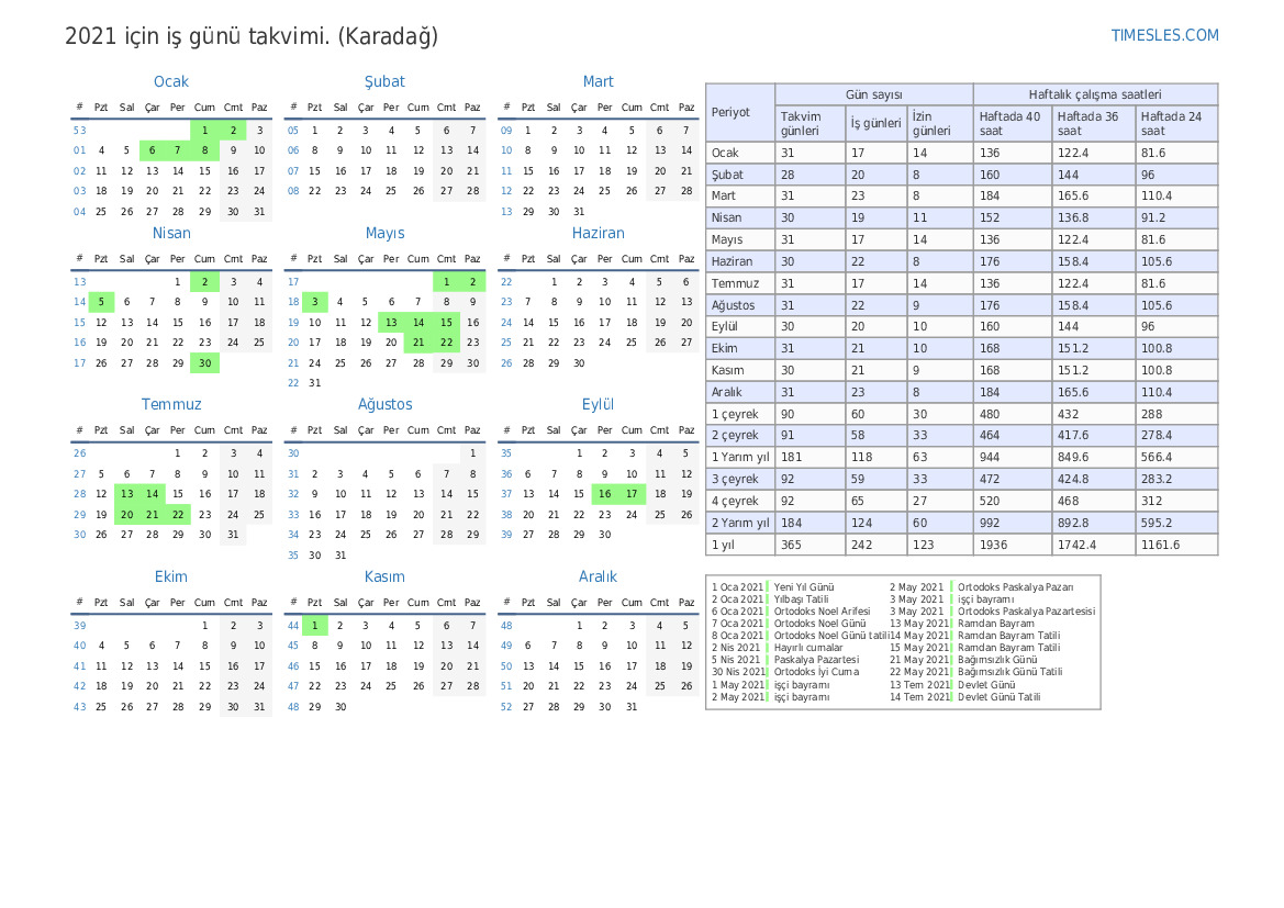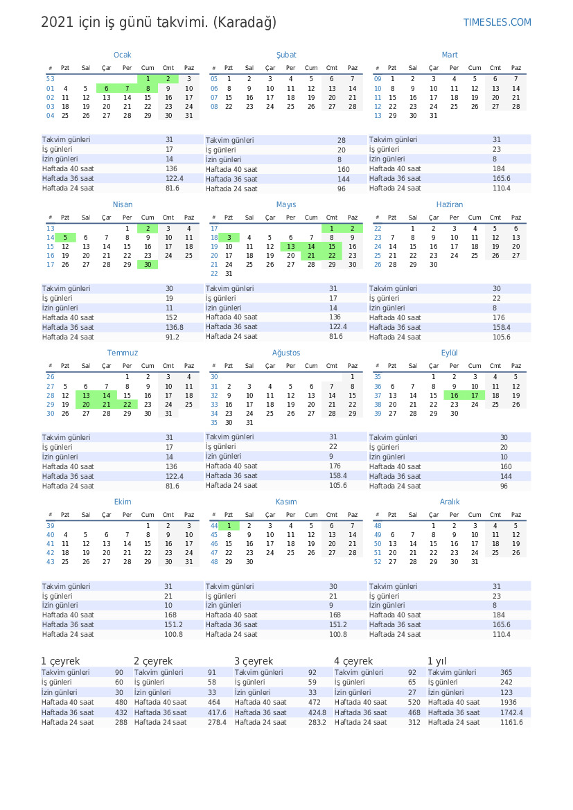 Karadağ için 2021 1. çeyrek takvimi