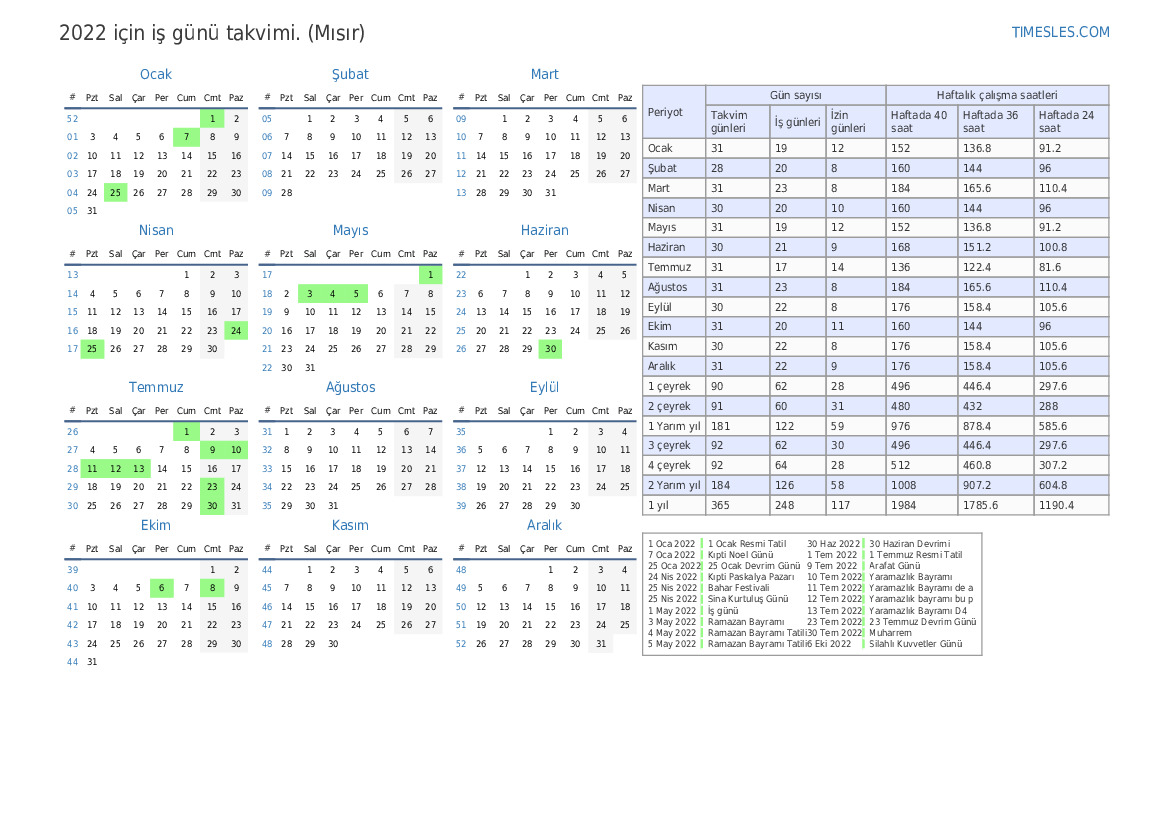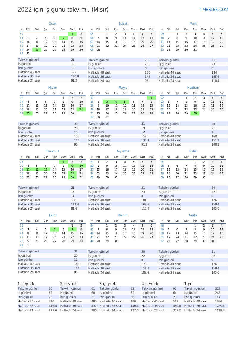 | İş günleri | 22 |