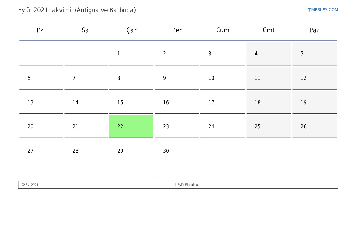 Antigua ve Barbuda için Eylül 2021 takvimi