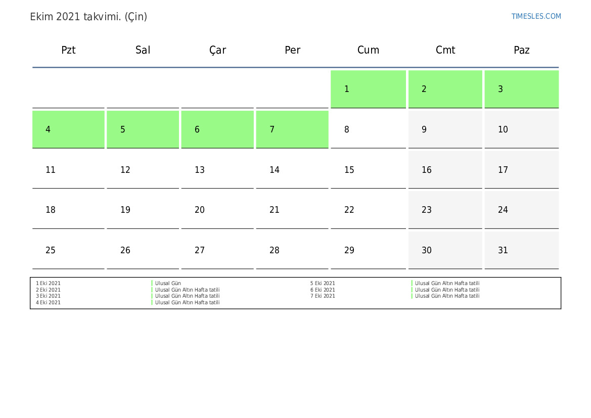 5 Eki 2021 Ulusal Gün Altın Hafta tatili