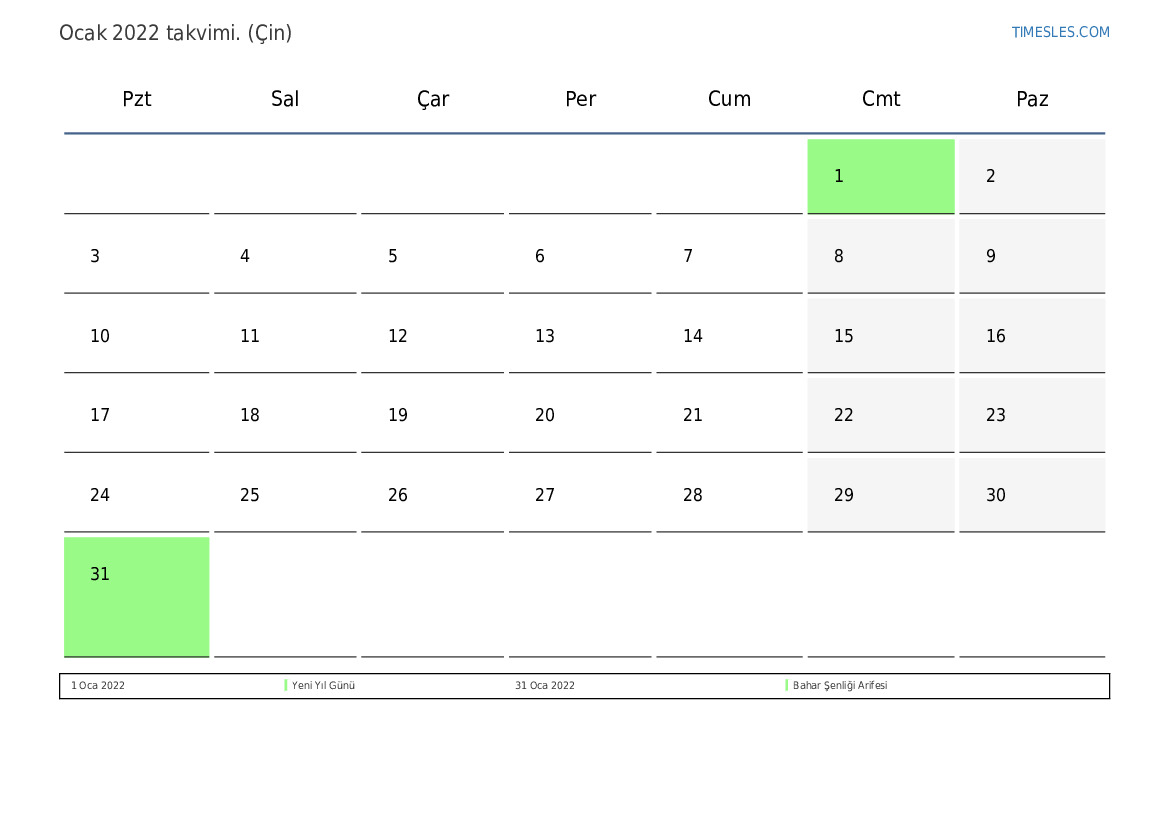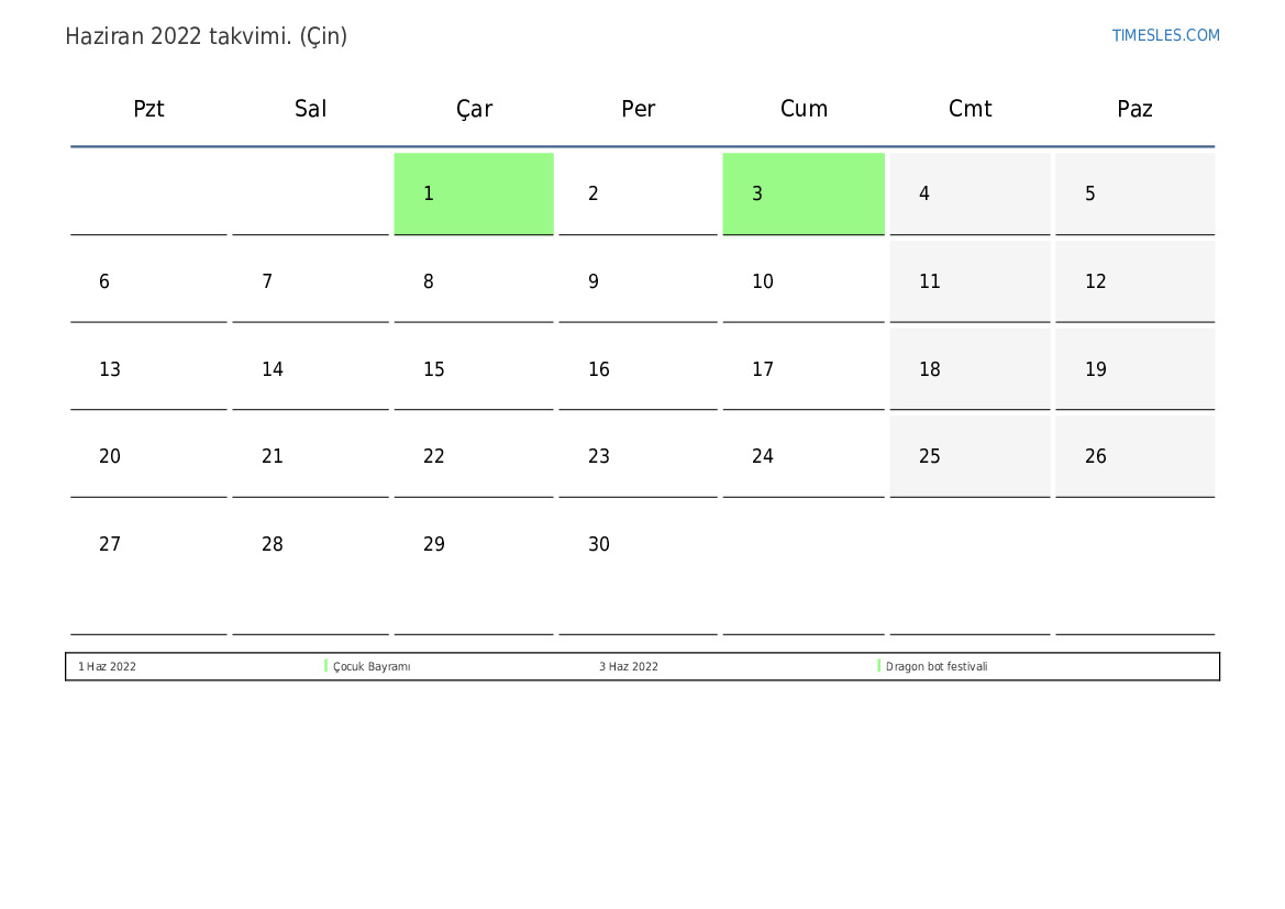Çin için Haziran 2022 tatilleri ve hafta sonlarını içeren PDF takvimini indirin ve yazdırın