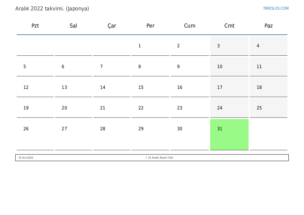 31 Ara 2022 31 Aralık Resmi Tatil