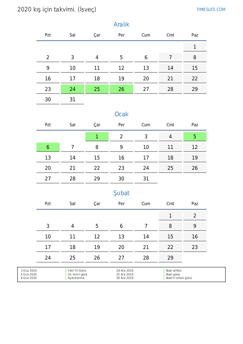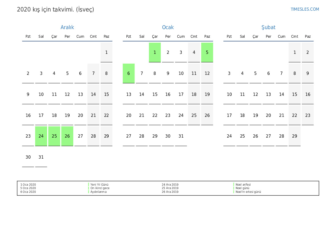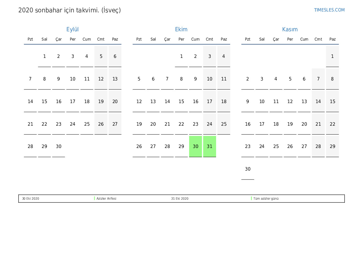 İsveç için 2020 sonbahar için tatil ve hafta sonları takvimi