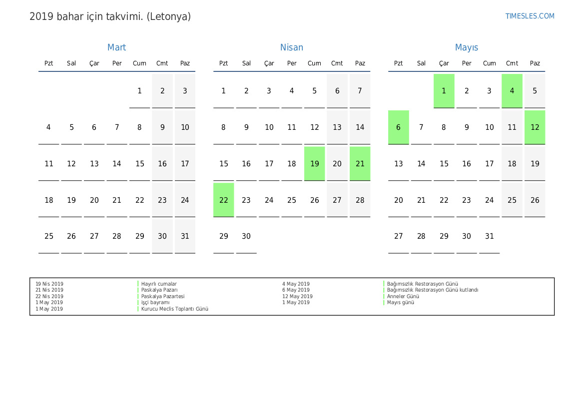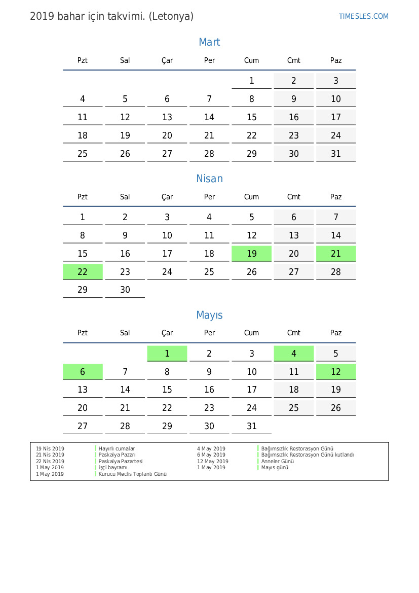 22 Nis 2019 Paskalya Pazartesi