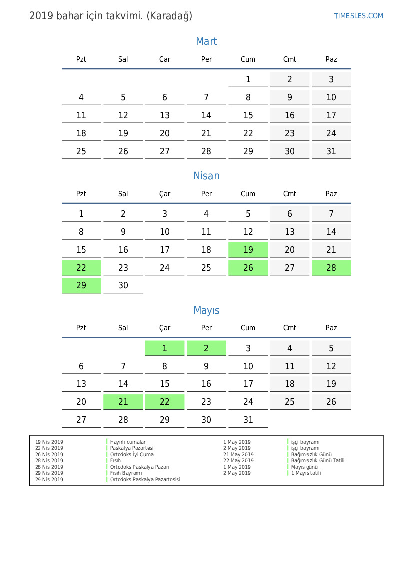 22 Nis 2019 Paskalya Pazartesi