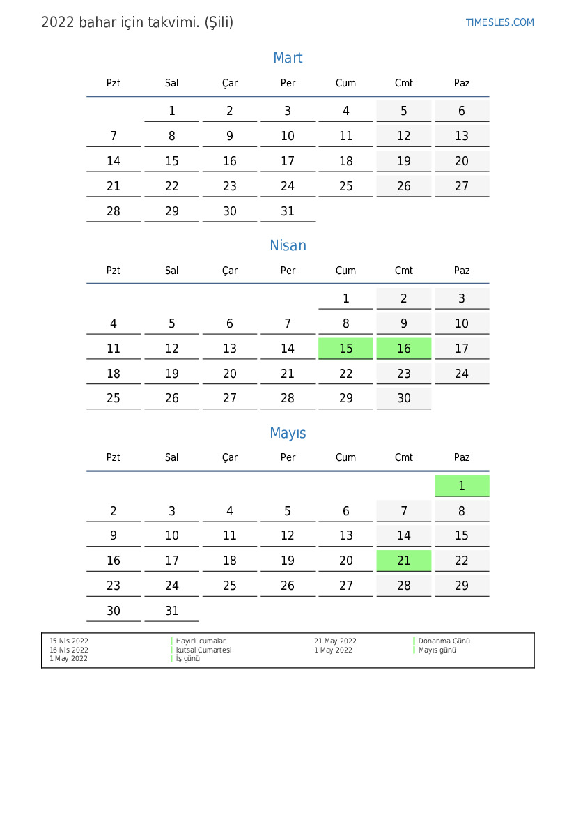 Şili için 2022 bahar için tatiller ve hafta sonları içeren PDF takvimini indirin ve yazdırın
