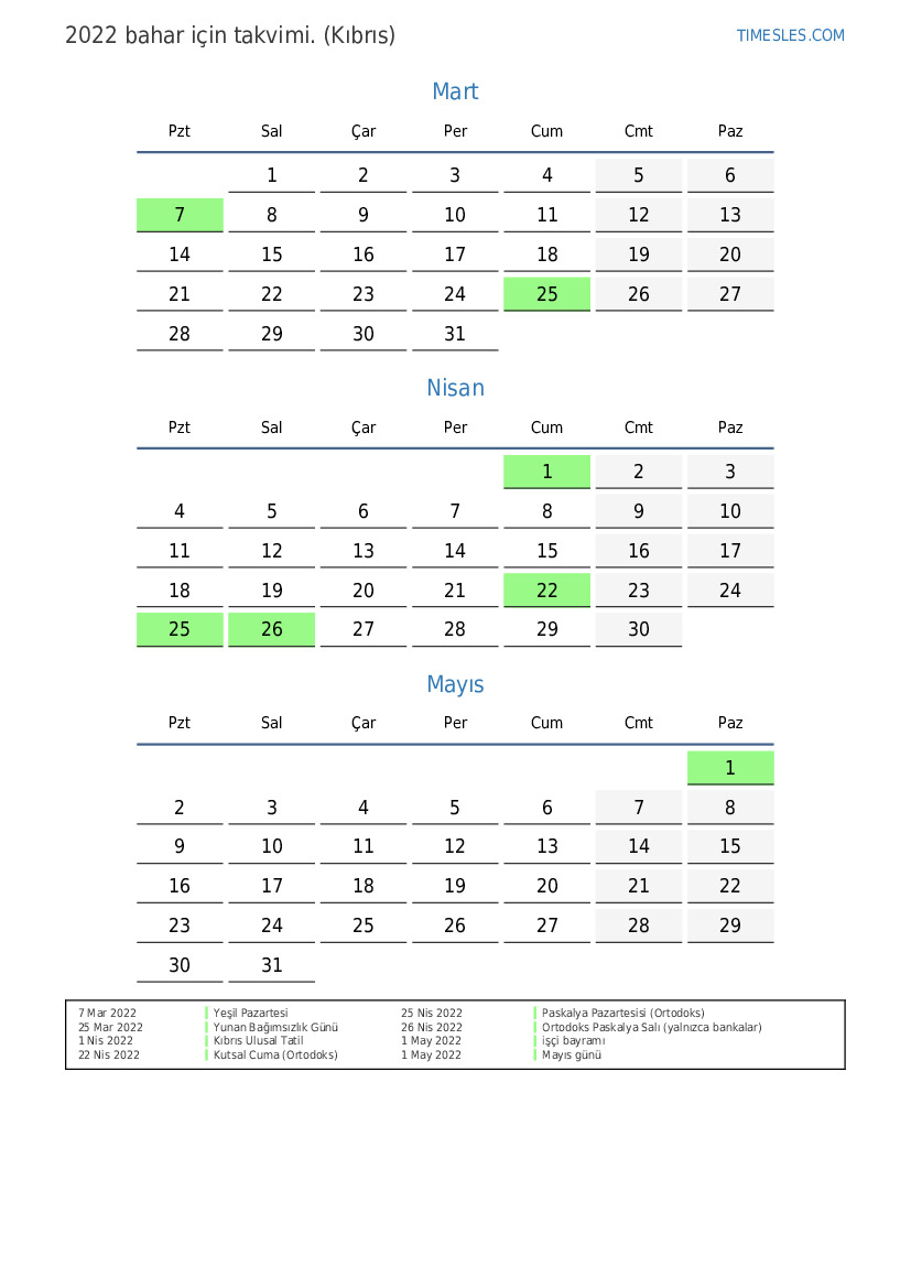 1 Nis 2022 Kıbrıs Ulusal Tatil