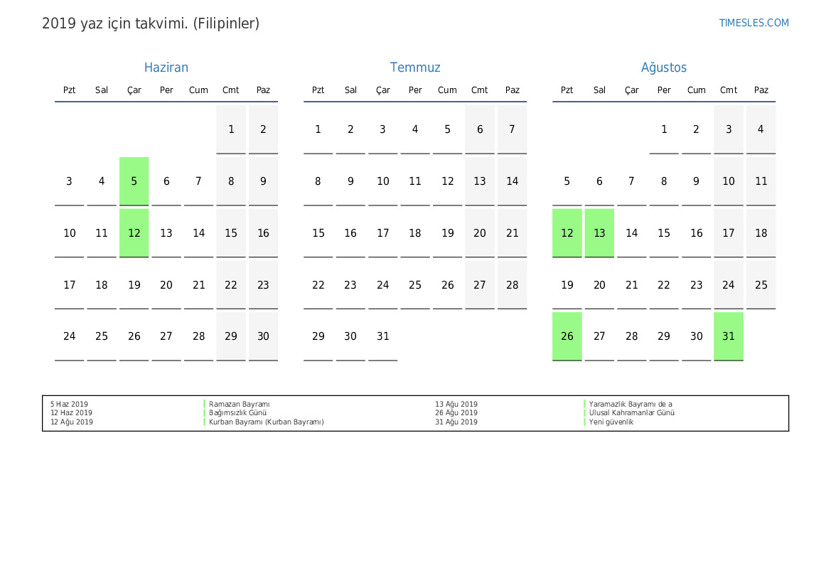 5 Haz 2019 Ramazan Bayramı