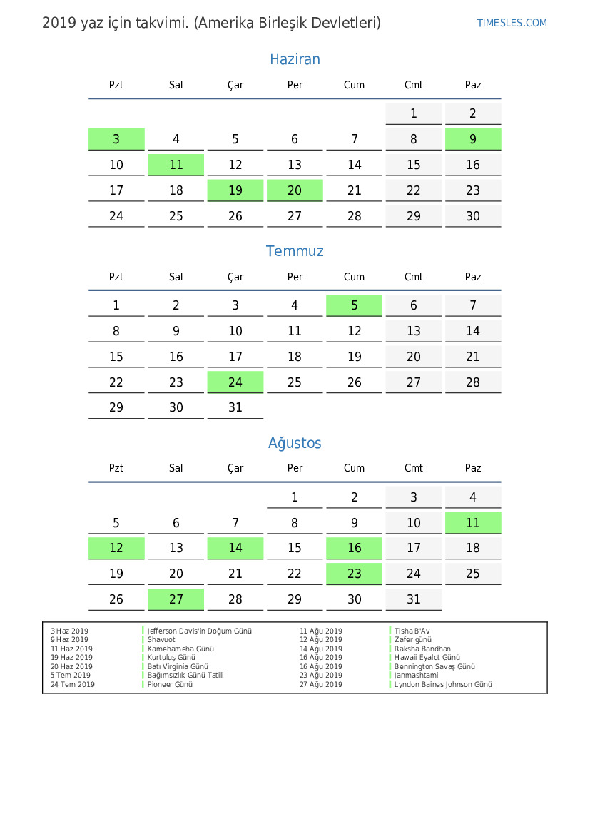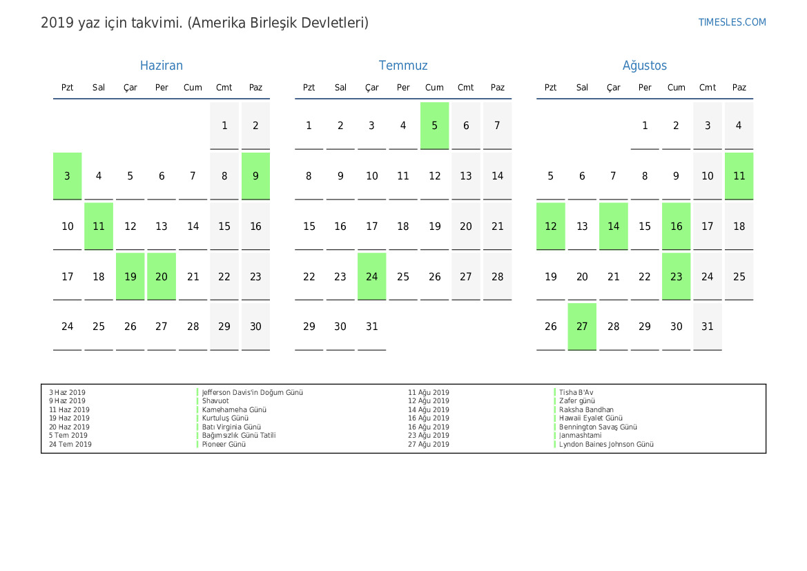 5 Tem 2019 Bağımsızlık Günü Tatili