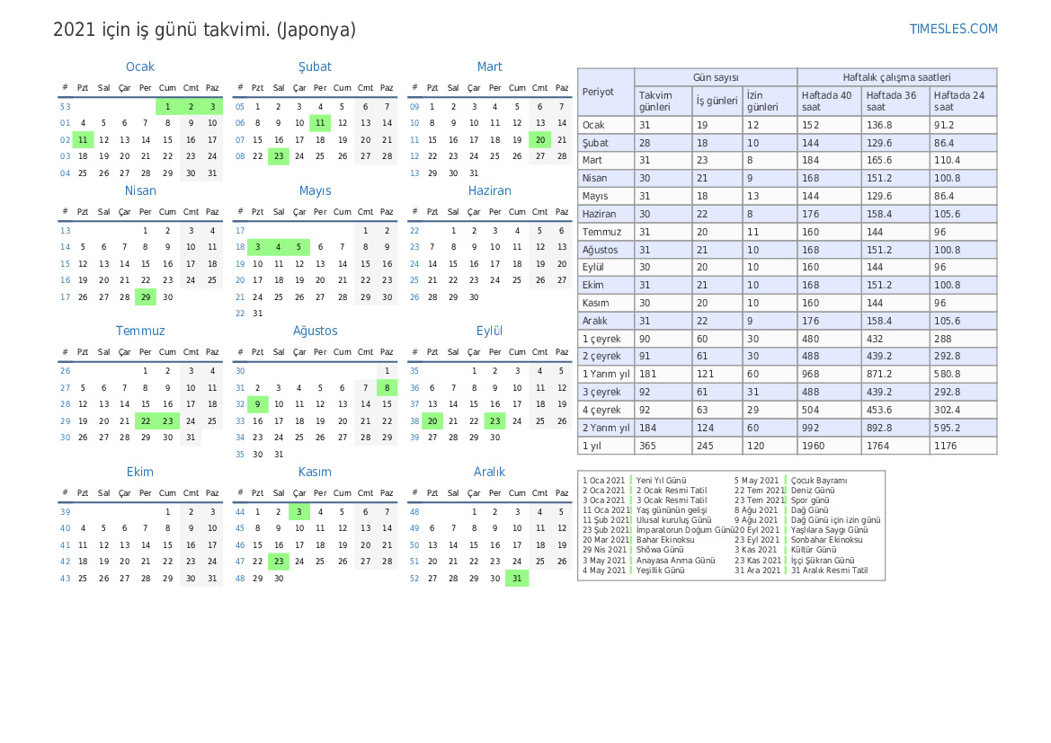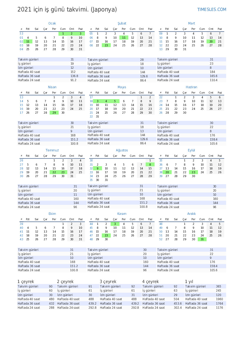 | İş günleri | 21 |