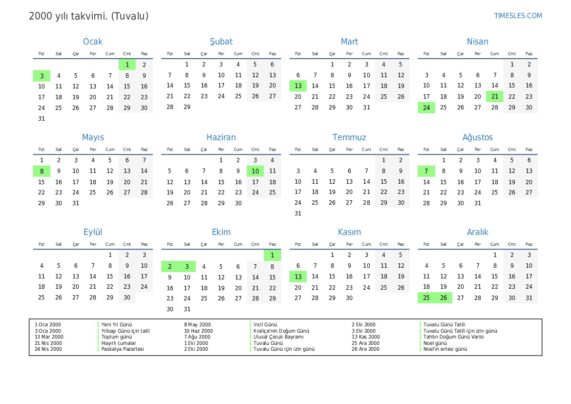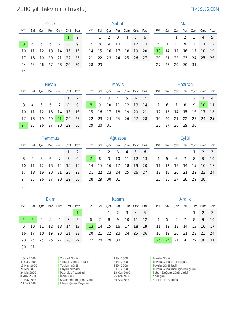 3 Eki 2000 Tuvalu Günü Tatili için izin günü