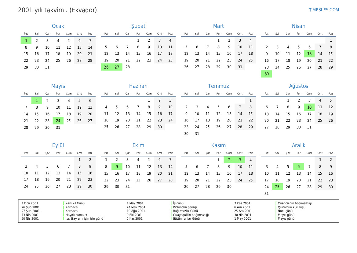 3 Mar 2001 Özel iş günü (Pazartesi Karnavalı için tazminat)
