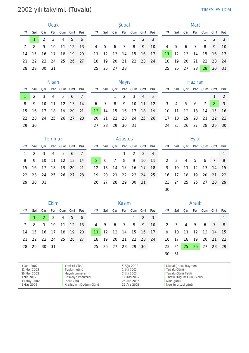 2 Eki 2002 Tuvalu Günü Tatili