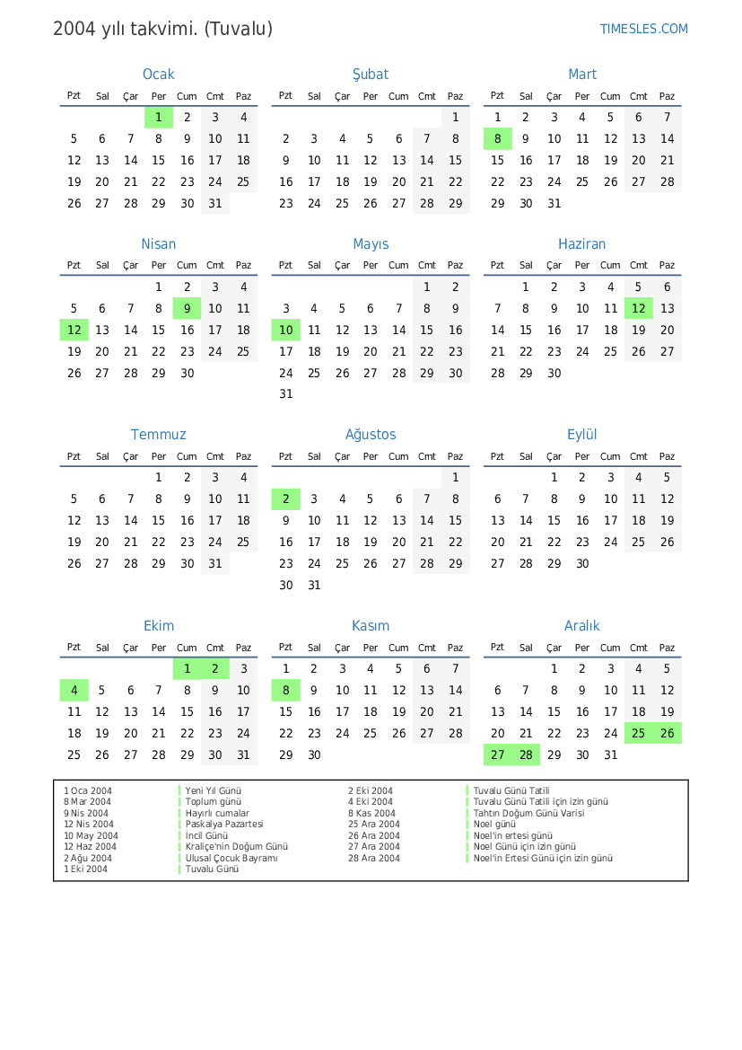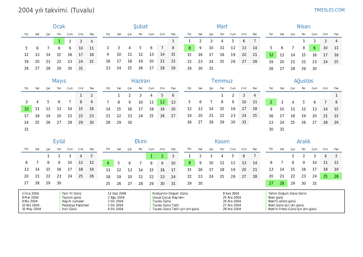 4 Eki 2004 Tuvalu Günü Tatili için izin günü