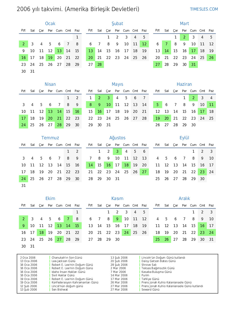 2 Oca 2006 Yılbaşı Günü için tatil