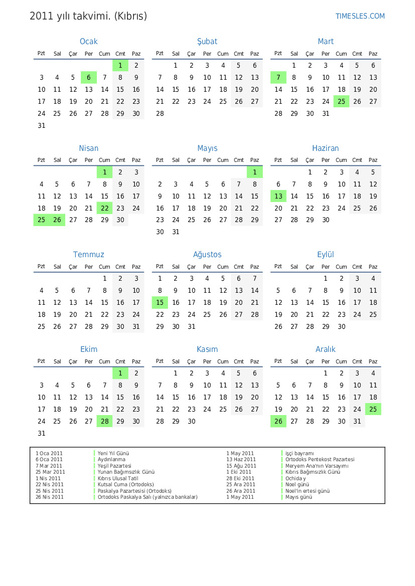 1 Nis 2011 Kıbrıs Ulusal Tatil