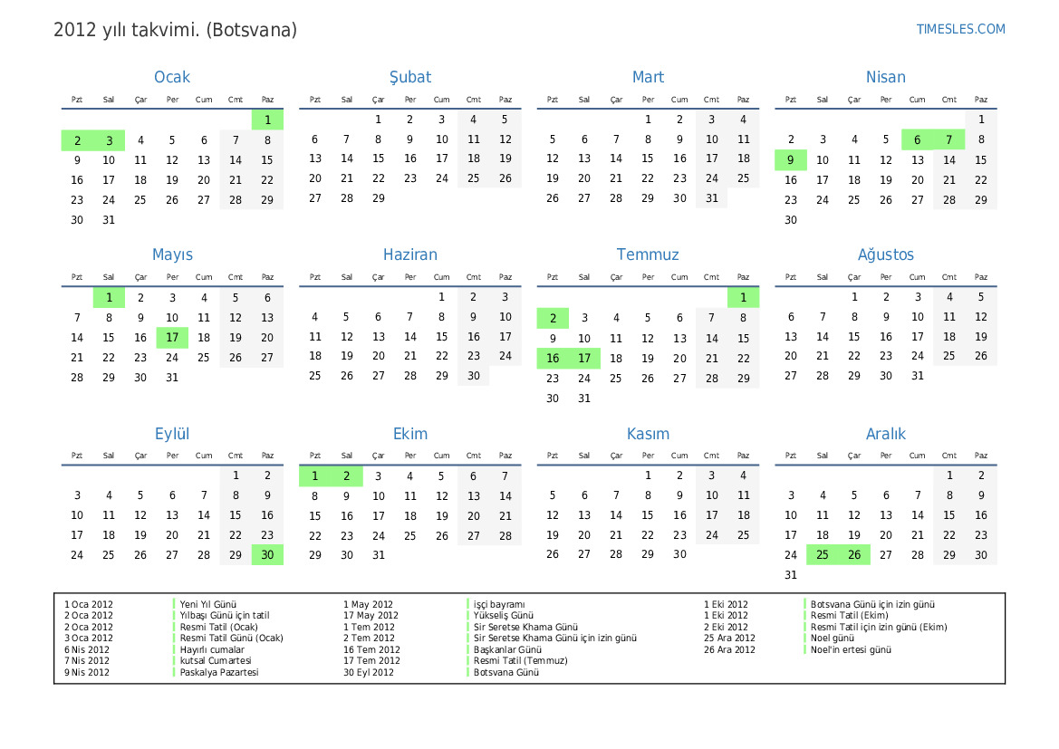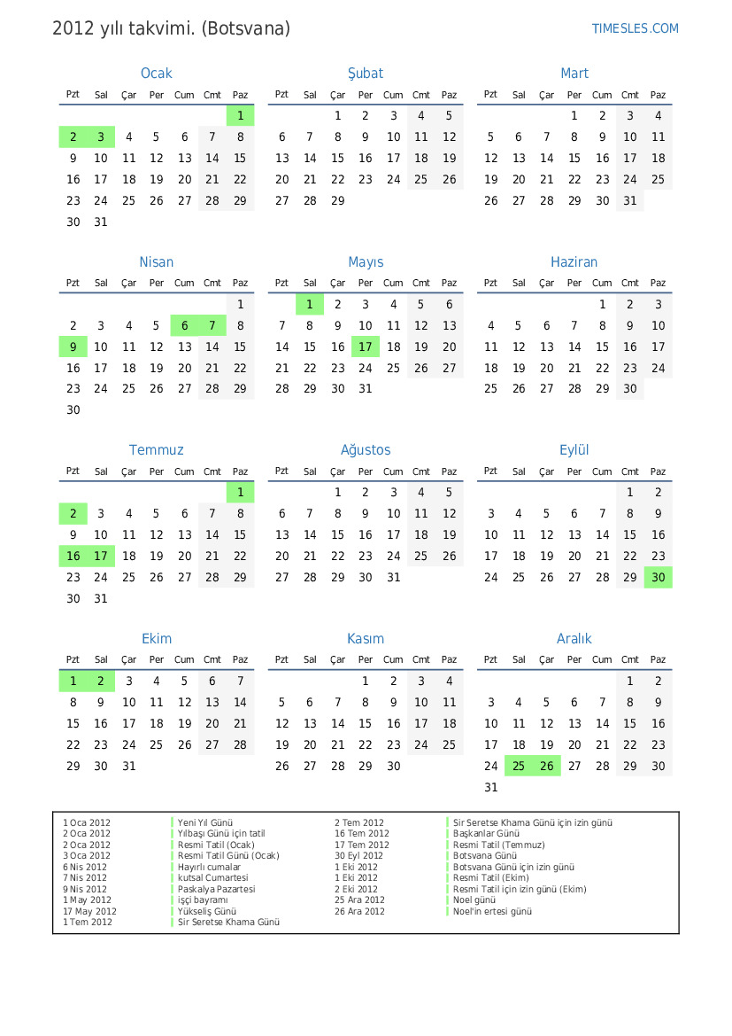 2 Tem 2012 Sir Seretse Khama Günü için izin günü