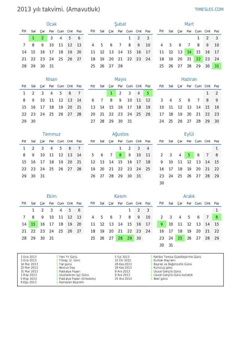 1 Nis 2013 Paskalya Pazartesi