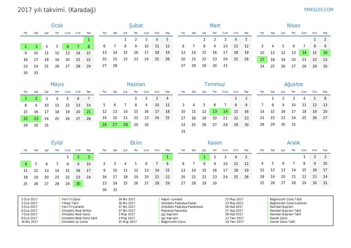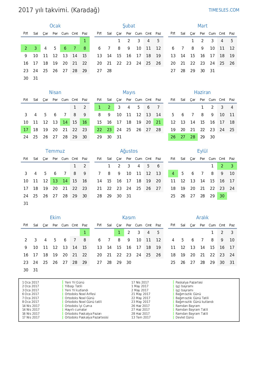 2 Oca 2017 Yılbaşı Tatili