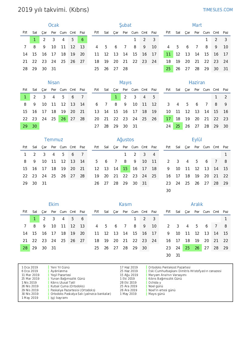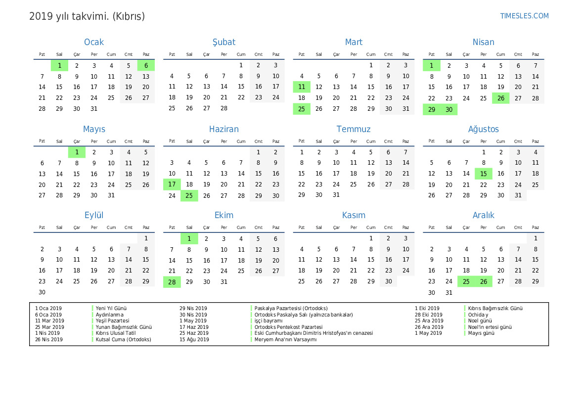 1 Nis 2019 Kıbrıs Ulusal Tatil