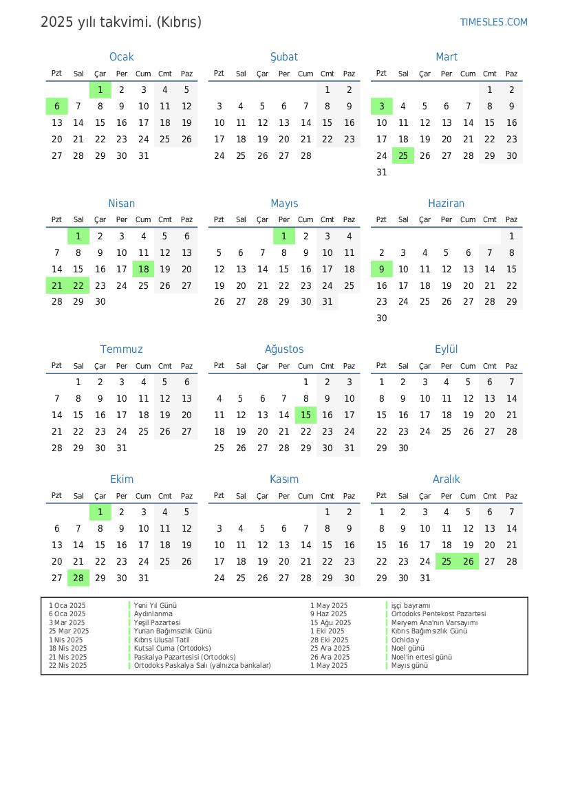 1 Nis 2025 Kıbrıs Ulusal Tatil