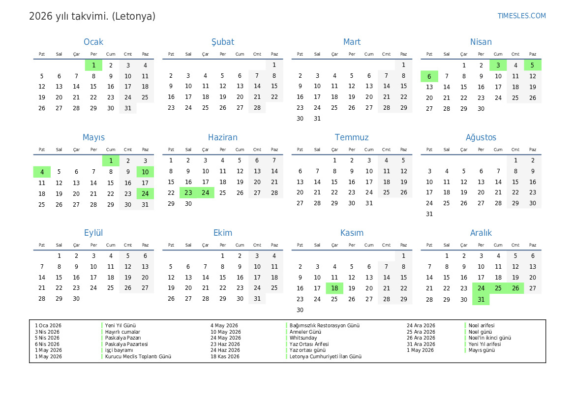 18 Kas 2026 Letonya Cumhuriyeti İlan Günü