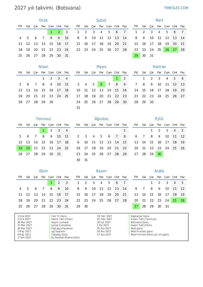 30 Eyl 2027 Botsvana Günü