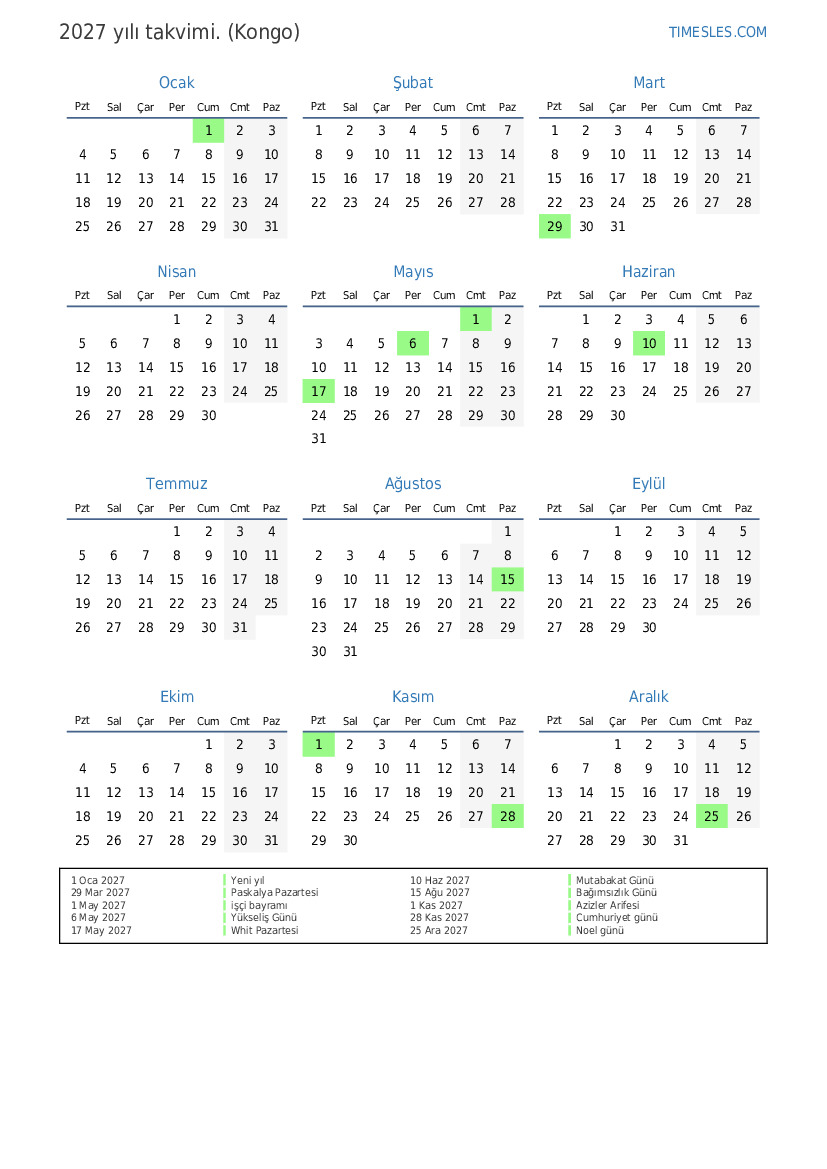 29 Mar 2027 Paskalya Pazartesi