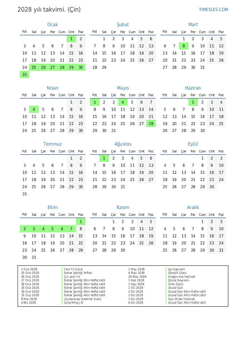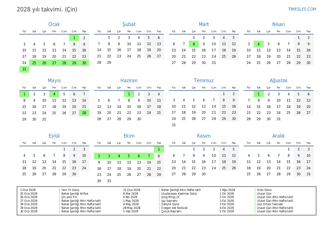 28 Oca 2028 Bahar Şenliği Altın Hafta tatili