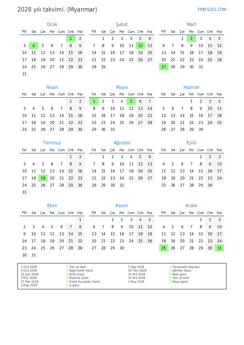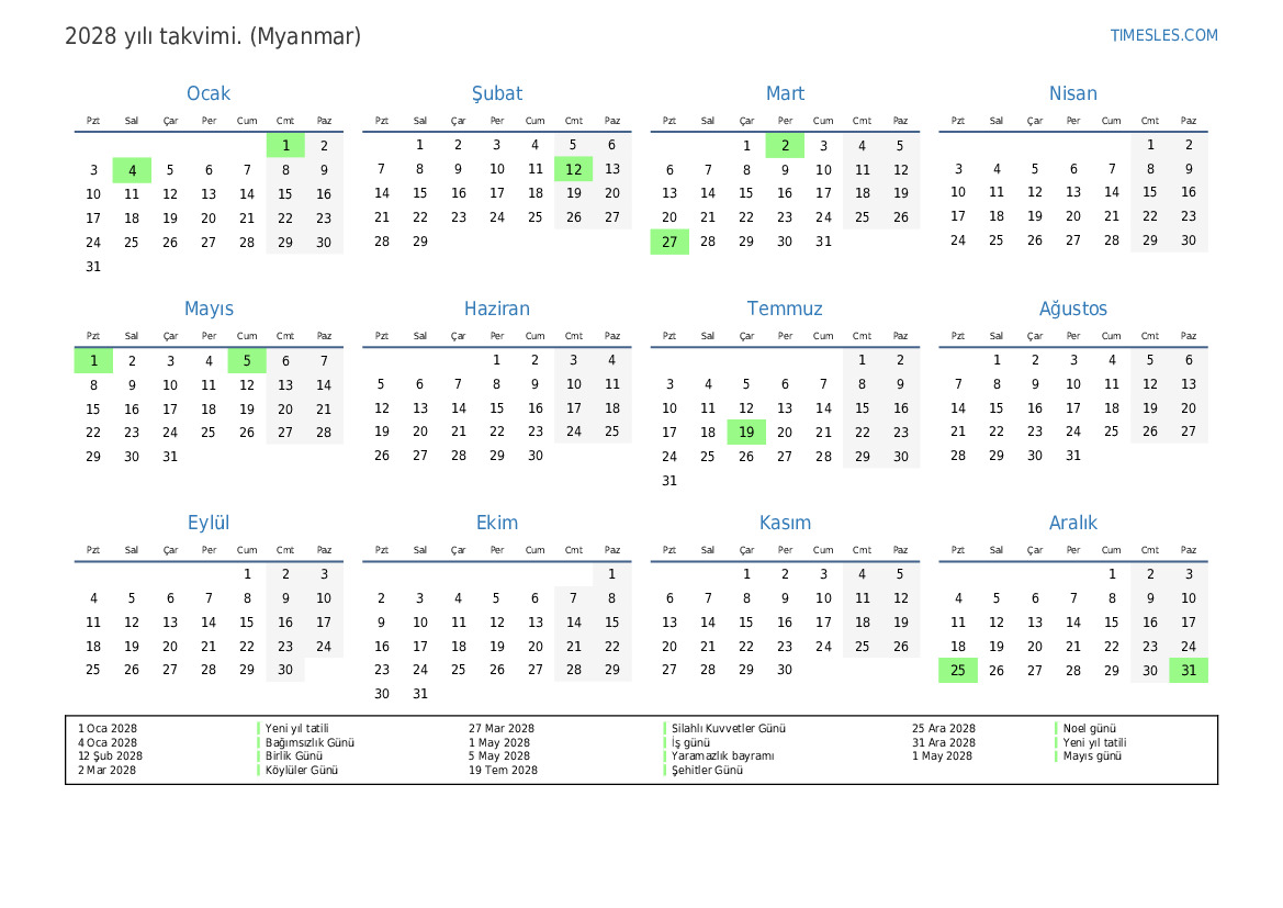 31 Ara 2028 Yeni yıl tatili