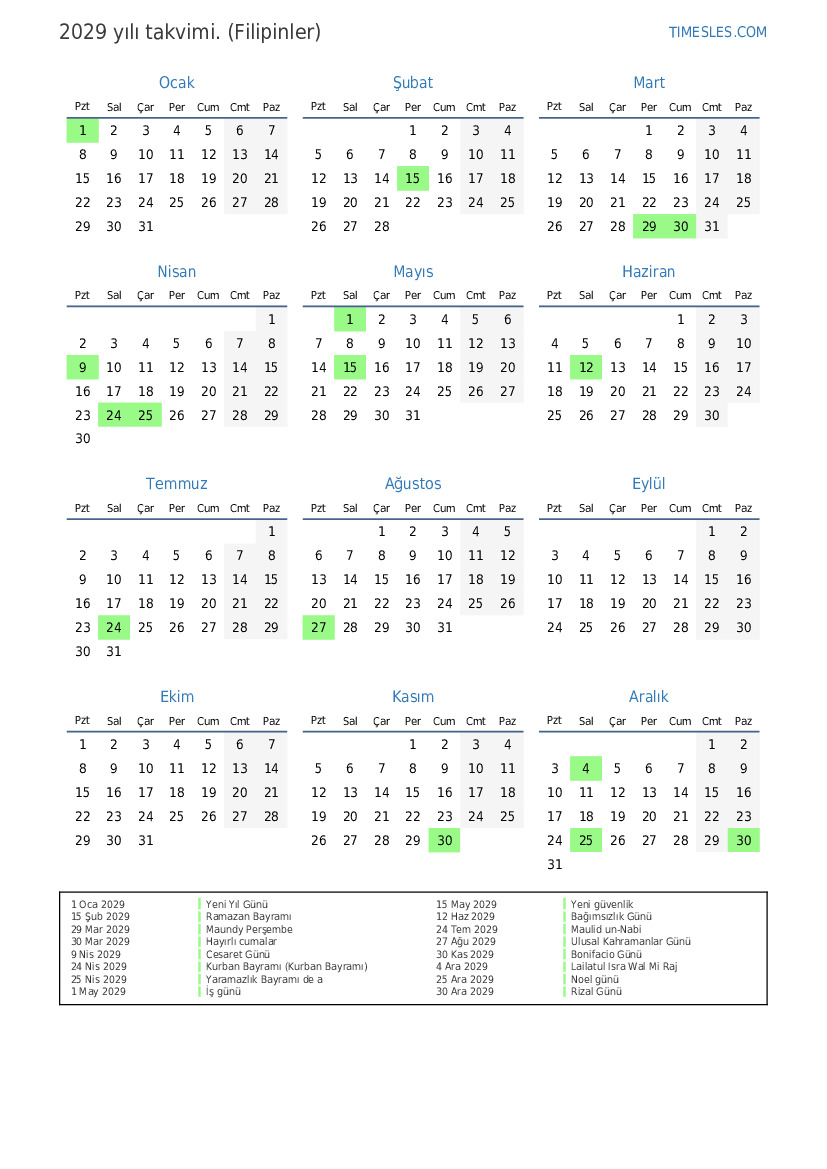 1 Nis 2029 Paskalya Pazarı
