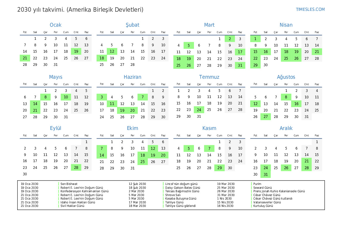 1 Mar 2030 Amerika Günü Boyunca Oku