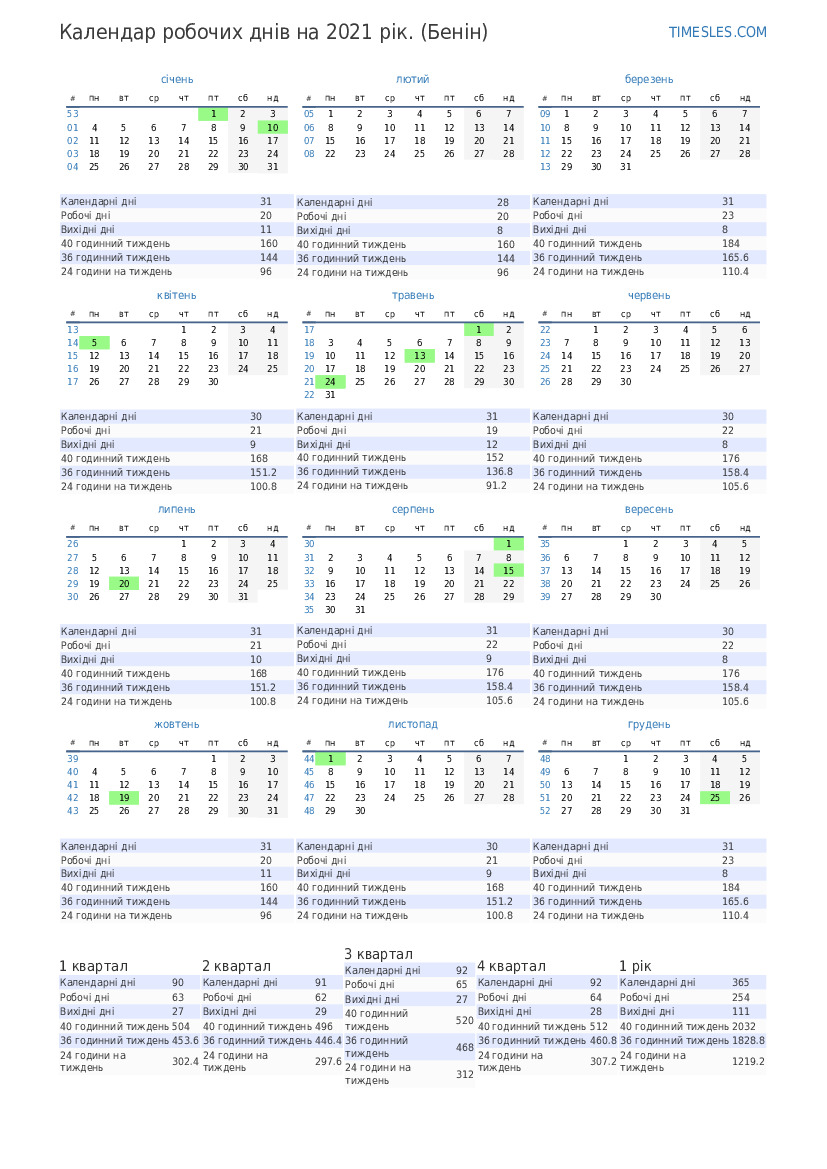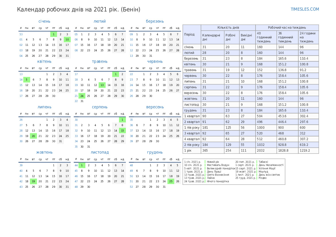 Календар робочих днів січень 2021 року з тижнями. П’ятиденний робочий тиждень. у Беніні 3 свят та вихідні на січень 2021 року. Календар з робочим часом та перенесенням відпусток.