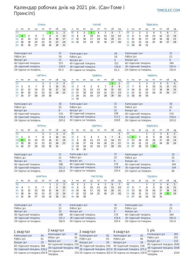 Календар робочих днів на квітень 2021 року для Сан-Томе і Принсіпі